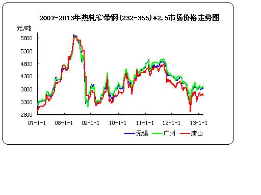 華東市場:華東地區帶鋼走勢主要跟隨北方調整,前期拉漲,后期回落,調整后本地區熱軋窄帶鋼主流報價維持在3730-3800元/噸左右。據對本地區中寬帶鋼的了解來看,由于出廠價較高,市場報價也普遍較高。本地區400-600之間的寬帶多為軋一及安鋼信陽的貨源,600-800之間貨源出貨斷檔,800以及上規格多為燕鋼及泰鋼貨源,中寬帶貿易商因利潤不好,商家也是越來越少,只為僅有的幾家所壟斷。