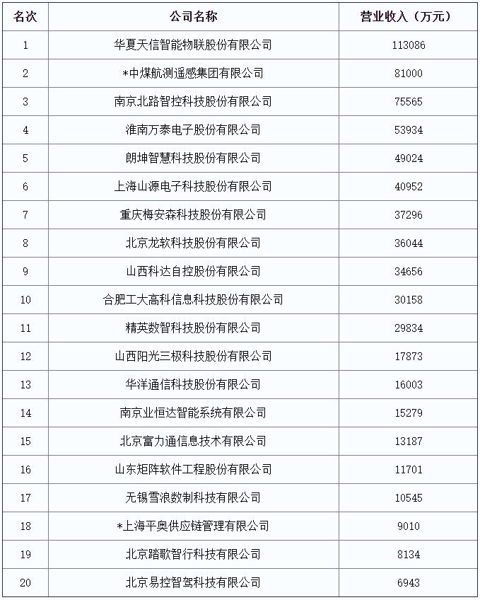 2023煤炭行業信息技術產業——其他信息公司營業收入前20名名單