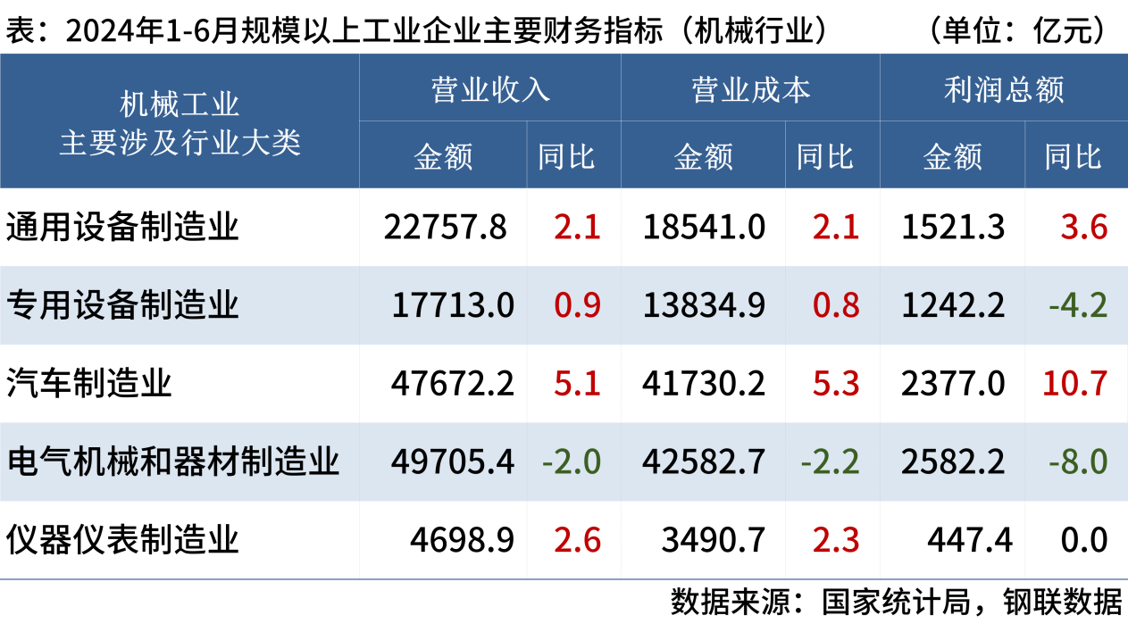 其中,機械工業(yè)主要涉及行業(yè)大類中,通用設備制造業(yè)增長3.6%,專用設備制造業(yè)下降4.2%,汽車制造業(yè)增長10.7%,電氣機械和器材制造業(yè)下降8%,儀器儀表制造業(yè)保持不變。