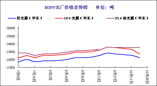 BOPP:10月第二周BOPP膜廠價格走勢圖