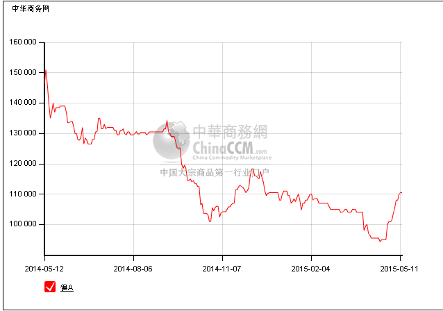 金川公司鎳價調整情況:年初108000元/噸,110500元/噸,4月下旬出現至今低點在94300元/噸 。從走勢圖來看,目前價格跟年初水平相差不多。