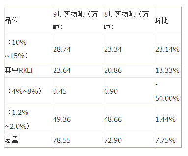(關鍵字:9月 中國 鎳生鐵 產量)