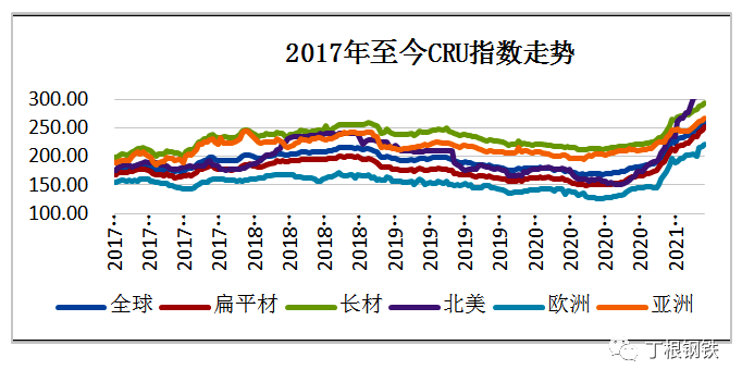特朗普政府通過多次的“大規模的刺激法案”, 增加進口關稅,意在提振美國制造業。開動印鈔機,累計向市場投放了16萬億美元流動性。最近拜登政府正努力計劃準備1.9萬億美元,用于經濟復蘇,其中基本建設超過1.5萬億美元。而且不顧美元貶值,美債走低的長期風險積累。還計劃印鈔,再投入3萬億美元發展高科技研發投入和基本建設。請注意,這是拜登許諾他任期內不讓中國經濟超過美國所采取的投資拉動經濟措施。這也是美國狂印美元,全球采購原材料,首次大規模用于國內經濟建設。只是把未來美元貶值風險留給全球承擔。這些措施將刺激北美市場用鋼需求和進口很可能成為全球快速增長的地區。也使美國鋼材市場價格上漲幅度遠高于世界其它地區。目前美國熱卷板價格1460美元/噸。美聯儲研究報告顯示:去年8月以來,美國國內鋼鐵價格上漲160%,即便算上25%的進口關稅,也使得進口鋼材要比美國本土鋼材便宜。這無疑增加了美國制造業的負擔。也刺激國際鋼價上漲。
